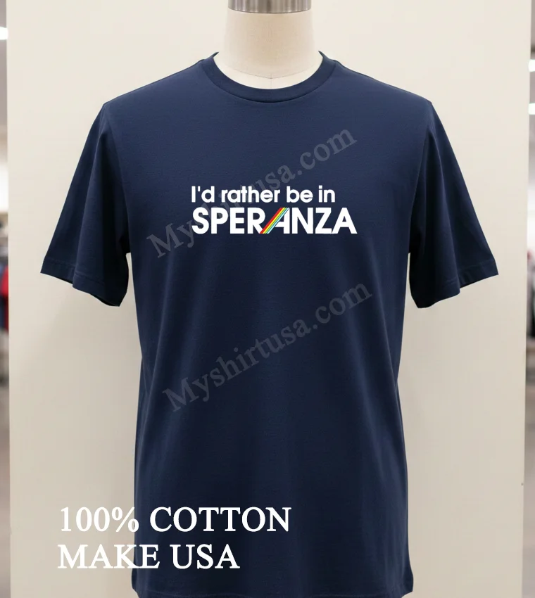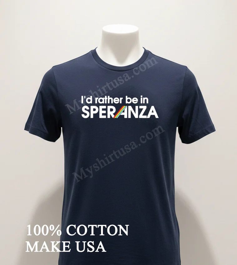 With all the buzz around vibrant colors and self-love dominating US fashion trends, especially in street style and summer festival looks, the I D Rather Be In Speranza Colorful Rainbow Stripe Shirt couldn’t be more timely. It’s not just a shirt; it’s a statement. At myshirtusa.com, snagging your piece of this feel-good fashion is super easy click, order, and it’s on its way. Perfect for those searching for “colorful rainbow stripe tee,” “Speranza fashion,” “hope apparel,” “vibrant graphic t-shirt,” or “positive vibe shirt.”