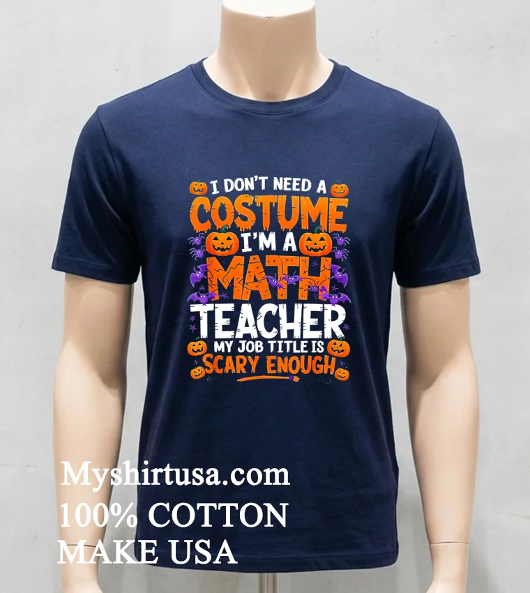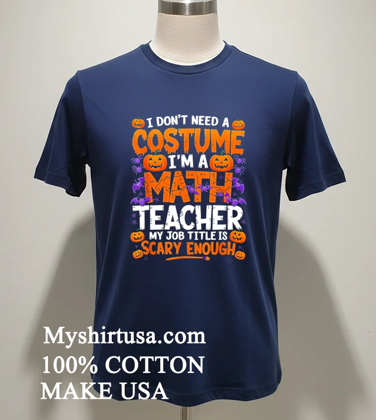Let’s talk about the shirt itself, because this isn’t just another mass-produced Halloween tee with a cheap plastic graphic. The “I Don’t Need A Costume, I’m A Math Teacher” message is brilliant it’s witty, relatable for any math teacher, and instantly tells a story. The retro font and vintage aesthetic give it that timeless cool factor, separating it from the usual cheesy Halloween stuff you see everywhere. It’s got character, a kind of understated charm that’s hard to find these days. You know how some shirts feel stiff and the print cracks after two washes? Not here. This design is built to last, woven into the fabric of your everyday hero status. Speaking of lasting, let’s get down to the threads. We’re talking about that premium, ringspun cotton feel the kind that gets softer with every wash, not rougher. It’s breathable, perfect for a busy school day or a cozy evening at home, reflecting the growing demand for comfortable yet stylish basics in American fashion. The fit is a modern classic comfortable, not too baggy, not too tight, just right for all body types. Think of it as your go-to tee for effortless cool. Pair it with your favorite distressed jeans and some classic sneakers for that laid-back weekend vibe. Throw on a denim jacket or a chunky cardigan when the autumn chill hits. Ladies, it looks amazing tucked into a high-waisted skirt with some ankle boots, or even knotted at the waist over leggings for a casual-chic look. Gents, it’s a no-brainer with chinos or cargo shorts. It’s versatile enough to transition from grading papers to grabbing a pumpkin spice latte. And hey, we want this shirt to be your favorite for years, right? Taking care of it is simple. Turn it inside out before tossing it in the wash cold water is your best friend here, helping to preserve both the color and the print. Skip the harsh bleaches; a mild detergent is all you need. For drying, a low tumble dry is ideal, or better yet, air dry it flat to really keep that perfect shape and extend its life. No need for dry cleaning fuss; this tee is as low-maintenance as your best students.