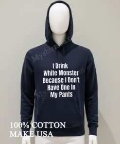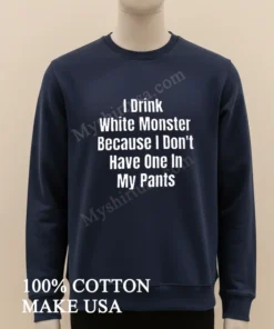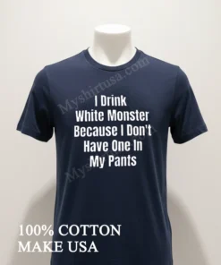 This isn’t just any graphic tee you’d find anywhere. The I Drink White Monster Because I Don’t Have One In My Pants Shirt stands out with its bold, instantly recognizable text, printed with a high-quality finish that resists cracking and fadingunlike those cheap imitations. We’re talking 100% premium American Cotton, soft to the touch, breathable for those sweltering summer days, yet substantial enough for layering under a flannel or hoodie when the chill sets in. Style it effortlessly: pair it with your favorite distressed jeans and sneakers for that laid-back, street-ready vibe, or tuck it into some chinos for a slightly more put-together, ironic look. To keep this gem looking fresh, simply machine wash cold inside out, and tumble dry low. Skip the iron directly on the print to maintain its vibrant message for years to come. You’ve probably already seen this exact design trending on Reddit’s r/funny, TikTok, and Instagram!