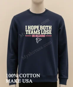 This shirt’s design is brilliant: bold ‘I Hope Both Teams Lose’ with a cheeky ‘Go Falcons’ it’s a vibe, not just a print. It instantly sets you apart, showing you’re here for the fun, making it the perfect anti-fan statement for today’s casual American fashion. While other shirts scream allegiance, this one sparks conversations! Crafted from 100% American Cotton, it’s incredibly soft, breathable, and feels like that perfectly broken-in tee. I pair mine with faded jeans and sneakers for an easy streetwear look. For lasting wear, wash inside out in cold water and tumble dry low. You’ll find this exact humor trending on Reddit’s r/NFL and blowing up on Twitter during chaotic game days.