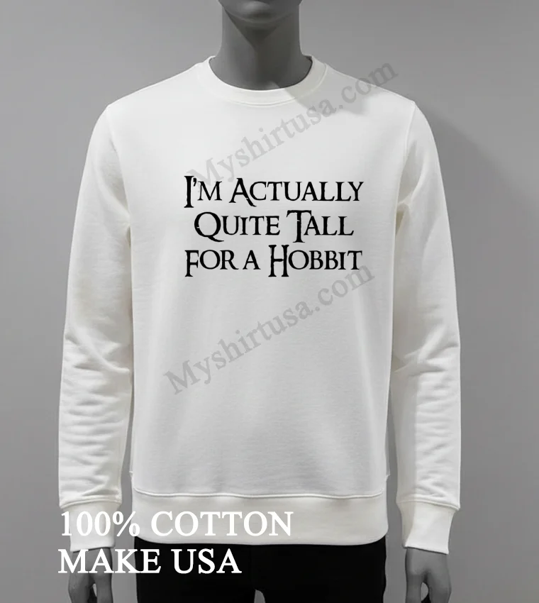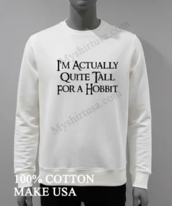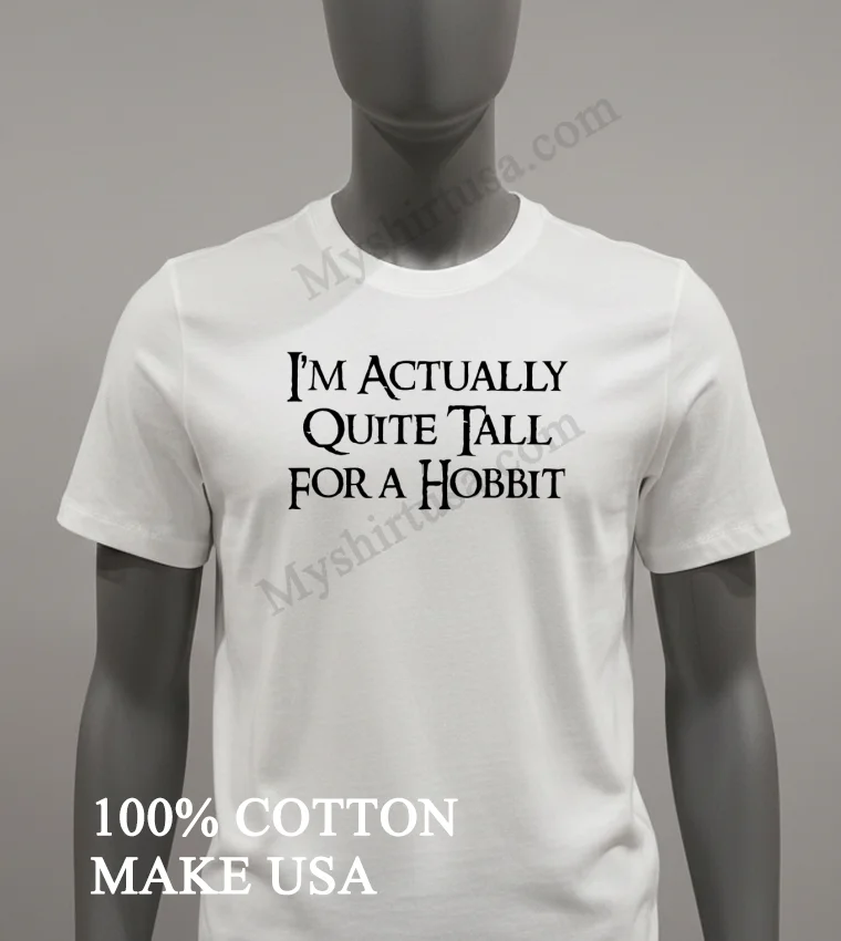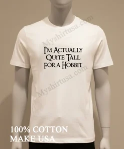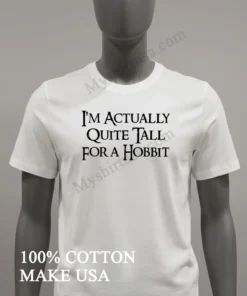 Just last week, during the buzz around the new ‘Rings of Power’ season finale, my buddy Dave was scrolling through Twitter and saw Chris Pratt jokingly tweet about feeling like a ‘tall hobbit’ on set. That instantly reminded me of this shirt! It’s perfect for anyone who, like Dave, loves a good fantasy epic but also appreciates a good laugh about their stature. Imagine wearing the I M Actually Quite Tall For A Hobbit Fantasy Novel Lettering Shirt to a Comic-Con, a watch party with friends, or even just out and about. It’s not just a statement piece, it’s a conversation starter. With ‘nerd chic’ fashion taking over the runways think utility vests and oversized graphic tees seen at New York Fashion Week this shirt fits right in. It’s about expressing your personality, embracing your fandom, and doing it with a subtle nod to current streetwear trends. Whether you’re heading to a casual brunch or a gaming meetup, this tee is a playful way to show off your love for fantasy without being over the top. It’s truly a must-have for the modern fantasy fan who’s also keeping an eye on what’s trending in casual wear.