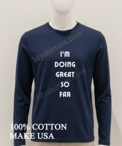 Life in 2024, right? Between all the “quiet luxury” trends we see on TikTok and the ongoing push for sustainable fashion in New York Fashion Week, sometimes you just need a dose of relatable humor. This I M Doing Great So Far Simple Shirt perfectly captures that everyday grind with a smile. It’s for those moments when you’re balancing it all, feeling pretty good about it, but know it’s a constant effort. You can snag this “doing great so far” tee, a perfect “simple shirt with a message,” or a “funny progress report t-shirt” quickly at Myshirtusa.com.