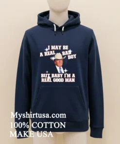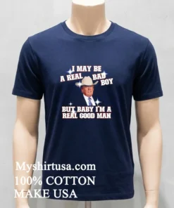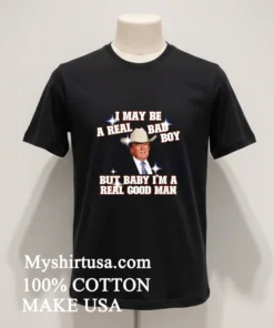 “Just got my I May Be A Real Bad Boy But Baby I M A Real Good Man Trump Shirt from Myshirtusa, and wow, the reviews weren’t kidding it arrived in just three days, free shipping too! Always a little nervous about online orders, but their delivery and return policy put my mind at ease. I love that feeling when you get a new tee that just fits right and feels good; this one’s definitely going into my regular rotation. So happy with it!