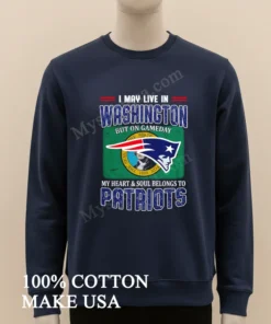 Game day rush! Sunday showdowns, Monday Night Football, or draft week Patriots fans feel it. At myshirtusa.com, snagging your I May Live In Washington But On Gameday My Heart & Soul Belongs To Patriots Shirt is simple. It’s your ultimate Washington Patriots shirt for gameday, perfect Patriots fan apparel. Show NFL fan loyalty; grab your Washington fan gear!