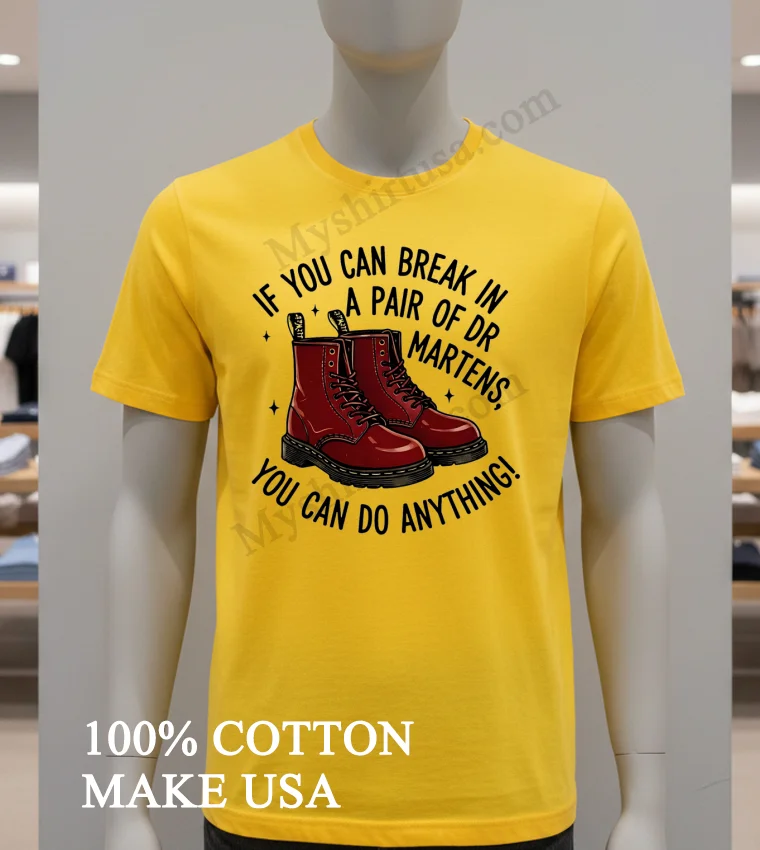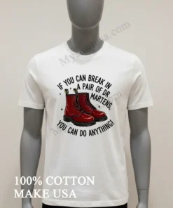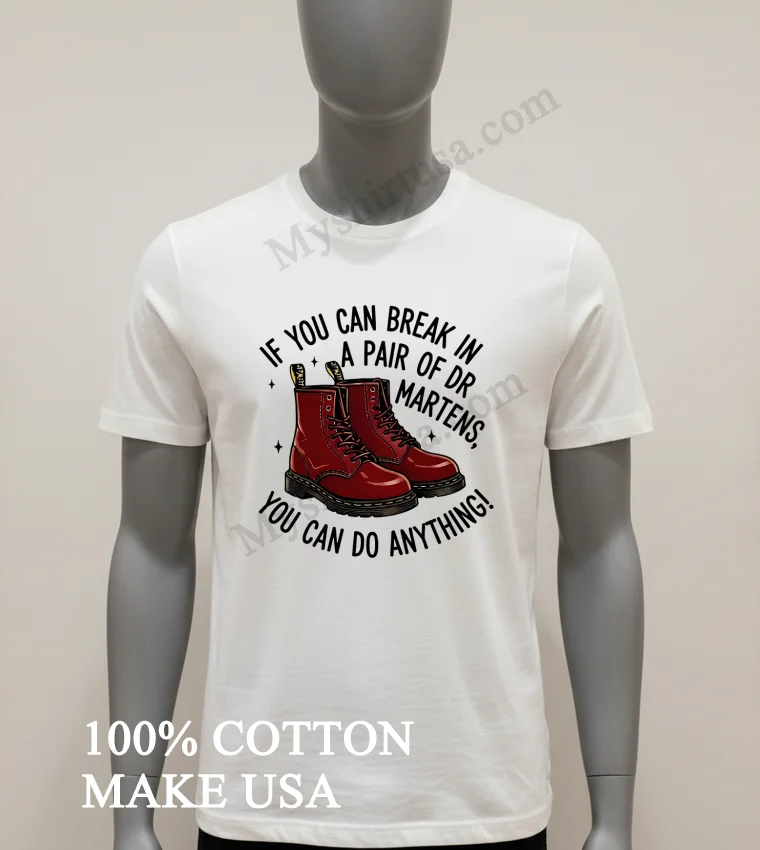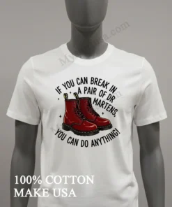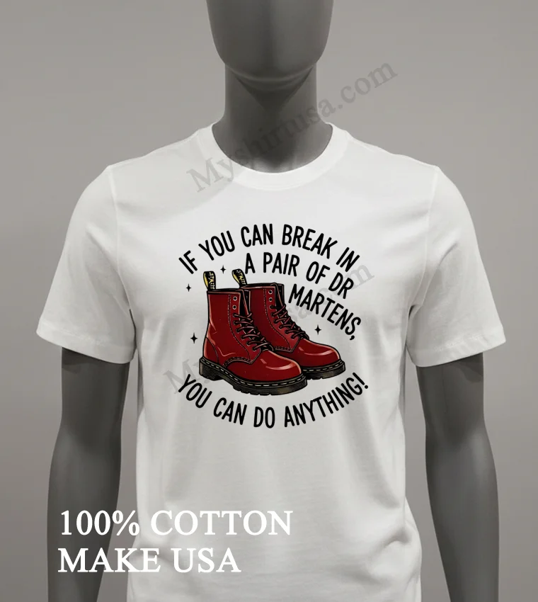 That “can-do” attitude is everywhere, from new entrepreneurs shaking up the market to everyday folks pushing their limits it’s the true American spirit! This shirt embodies fierce resilience, aligning with current authentic style trends. Grab your If You Can Break In A Pair Of Dr Martens You Can Do Anything Shirt easily at myshirtusa.com. Find your ‘Dr Martens spirit wear,’ ‘resilience fashion tee,’ or ’empowerment graphic shirt’ today.