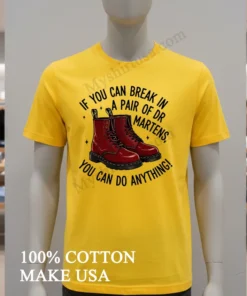 Ready to wear your resilience? Why settle for ordinary? Own the If You Can Break In A Pair Of Dr Martens You Can Do Anything Shirt and experience 100% American Cotton, soft, stretchy, breathable, for just $23 USD. Delivered to your door in 3-5 days in the US. Style it Vintage, Streetwear, or classic American the choice is yours! Find your strength, your unique voice, at Myshirtusa today!