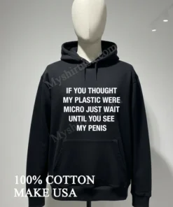 Ready to make a statement that can’t be ignored? Our high-quality, beautiful T-shirts, like the If You Thought My Plastic Were Micro Just Wait Until You See My Penis Shirt, are crafted from 100% American Cotton soft, stretchy, and incredibly breathable. At just $23 USD, with 3-5 day delivery right here in the US, it’s a no-brainer for your Vintage, Streetwear, or American style collection. Why wait to add a little unapologetic humor to your wardrobe? Find your next favorite at Myshirtusa!