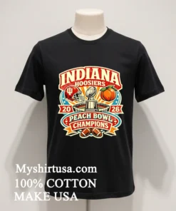 Remember when that viral tweet from a sports analyst predicted the Hoosiers would be dark horses for 2026, and suddenly everyone was buzzing? That’s what sparked my excitement for this T-shirt! The Indiana Hoosiers Peach Bowl Champions 2026 College Football Shirt isn’t just fabric; it’s a statement, a pre-celebration of what could be an epic season. It’s perfect for game days, tailgates, or just showing your pride when you’re out grabbing a coffee. Plus, with the recent surge in collegiate streetwear and vintage-inspired sports apparel think oversized graphic tees paired with chunky sneakers, a trend we’re seeing everywhere from TikTok to New York Fashion Week this shirt fits right into that aesthetic. It’s a nod to future glory wrapped in today’s hottest fashion trends, making it a must-have for any Hoosiers fan looking to stay stylish.