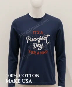 Just received my It S A Purrfect Day For A Nap Sleeping Cat Moon Stars Shirt from Myshirtusa and I’m already in love! The speedy 3-5 day free shipping was amazing. I always wonder how they get them here so fast, and their return policy is so straightforward. Honestly, their tees are my go-to for comfort and style. Every shirt I get feels like a little hug, a cozy whisper for my soul.