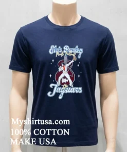 When I first laid eyes on this shirt, the design elements truly grabbed me. It’s not just some random mashup; it’s an artful blend of two American icons. You’ve got the unmistakable roar of the Jaguars, powerfully intertwined with the King of Rock and Roll’s legendary imagery maybe a silhouette, or a classic microphone. It instantly tells a story. What makes it stand out from the sea of basic team gear? It’s the unexpected fusion, the “how did they think of that?” factor. This isn’t a tee you’ll see every other fan wearing, which, for me, is half the appeal. It’s crafted from 100% American Cotton and trust me, you can feel the difference. It’s got that immediate softness, the kind that feels like an old favorite from the first wear, but with the crispness of a brand-new print. The fabric is breathable, perfect for those humid Florida game days or just a casual Saturday in town. Styling it is a breeze; whether you tuck it into some vintage-wash denim, layer it under an open plaid shirt, or simply pair it with your go-to khaki shorts and some fresh white sneakers, it nails that effortlessly cool American style. To keep this masterpiece looking sharp, just remember to turn it inside out before washing in cold water, and tumble dry on low or, even better, hang it to dry. This little bit of care ensures the vibrant print stays put and the cotton remains soft for years of cheering and rocking out.