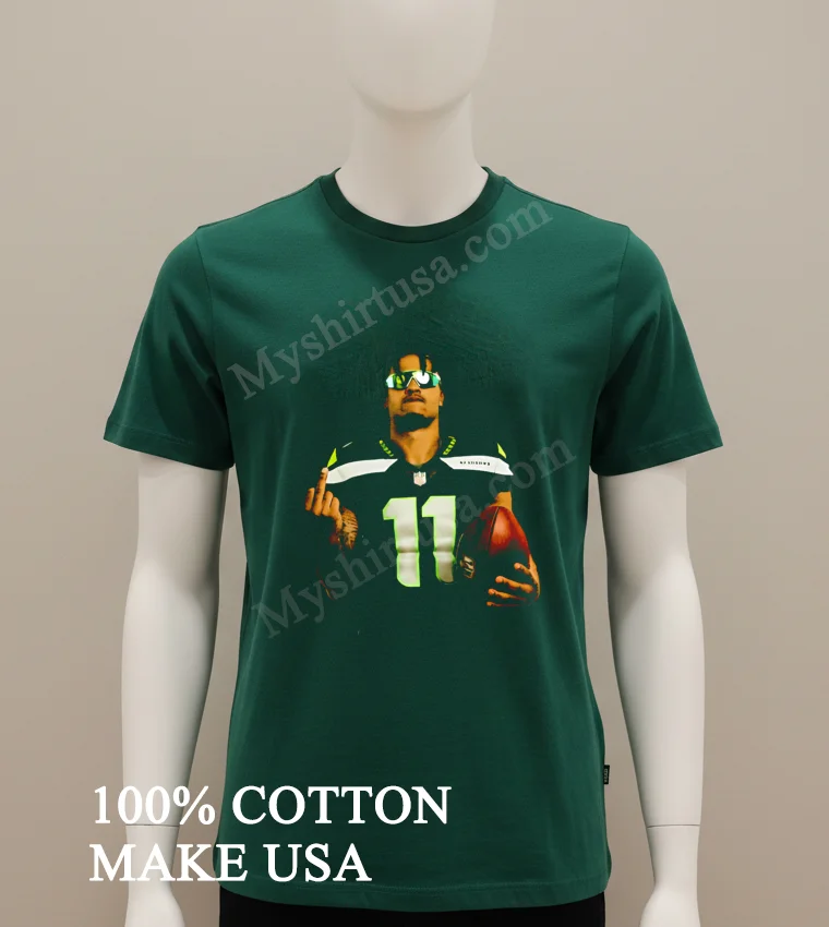 Ready to elevate your game day or everyday style? Why settle for less when you can have quality and iconic design? This tee, made from 100% American Cotton, is incredibly soft, stretchy, and breathable. Get your Jaxon Smith Njigba Number 11 Sunglasses Holding Football Gesture Shirt for just $23 USD with quick 3-5 day delivery across the US! Perfect for Vintage, Streetwear, and classic American styles. #JSN11Gear #AmericanFashion #SeattleFootball #StreetwearUSA #Myshirtusa