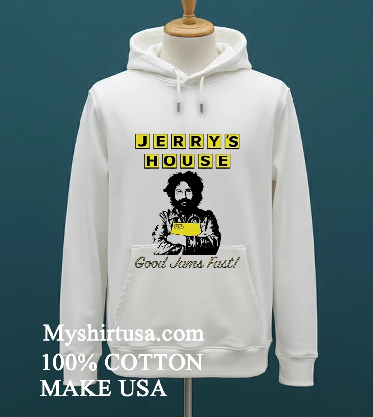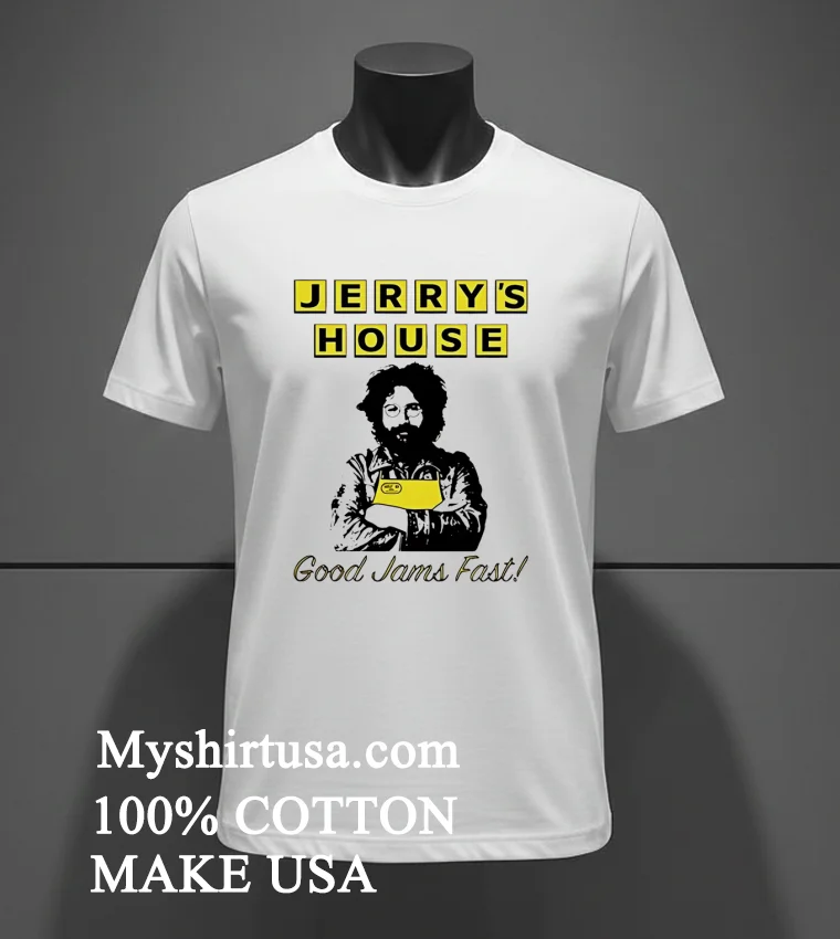 Let’s talk about what makes this tee truly special. The design on the Jerry’s House Good Jams Fast Waffle House Shirt isn’t just some random graphic; it’s a whole mood. The playful “Good Jams Fast Waffle House” lettering, probably in a retro diner font, brings a smile to your face, reminiscent of classic American roadside diners and the simple pleasures of life. It’s not an over-the-top, flashy statement, which is exactly why it stands out in a sea of generic logos. You won’t find this kind of genuine, quirky charm on every rack. As for the material, we’re talking about 100% premium American cotton. It’s not that scratchy, stiff stuff you find sometimes; this tee feels soft against your skin from the first wear, like an old favorite you’ve had for years. It’s got that perfect lived-in feel, breathable for summer but substantial enough for layering when there’s a chill in the air. Style it with your favorite distressed jeans and some classic sneakers for that quintessential American casual look, or throw it on with some trendy cargo pants for an updated streetwear vibe. Taking care of it? Super easy. Just toss it in the wash with cold water, inside out, to protect the print, then tumble dry on low. It’s built to last, just like those good memories it evokes.