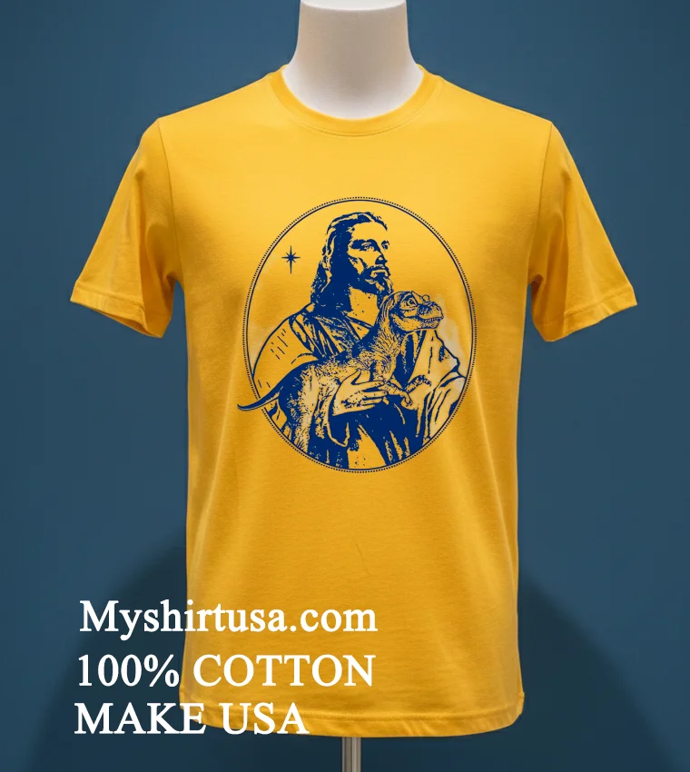 Ready to upgrade your wardrobe with a tee that’s anything but ordinary? Why settle for boring when you can wear a masterpiece? Grab your own Jesus Holding Dinosaur Shirt today from Myshirtusa! Crafted from 100% American Cotton, soft, stretchy, and breathable for ultimate comfort, priced at just $23 USD. Enjoy lightning-fast delivery in 3-5 days across the US. Perfect for a Vintage, Streetwear, or classic American style!