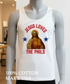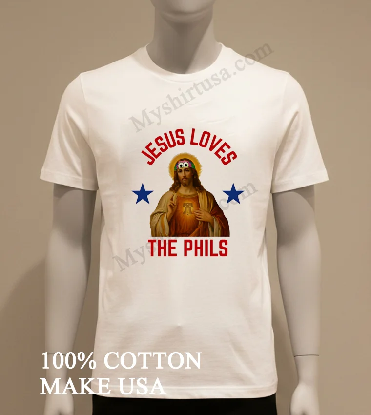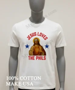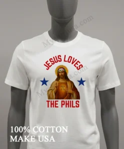 Forget those generic, mass-produced tees you see everywhere. Our design, a true masterpiece of local pride, features a baseball-stitched Liberty Bell perfectly framing the heartfelt message, ‘Jesus Loves The Phils.’ It’s uniquely heartwarming, a genuine conversation starter that absolutely outshines typical fan apparel and aligns perfectly with today’s focus on authentic, expressive fashion. Crafted from 100% premium, ring-spun American cotton, it feels incredibly soft and luxuriously breathable none of that stiff, scratchy fabric you regret buying. I personally love rocking mine with distressed denim for a chill, ‘streetwear cool’ vibe, or layered stylishly under an unbuttoned flannel shirt for that timeless, classic American aesthetic. For long-lasting vibrancy and to keep that awesome print looking fresh, remember to wash it inside out in cold water, tumble dry on low, and definitely skip the bleach. You’ll find fans passionately discussing and sharing their love for this specific tee all over Reddit’s r/Phillies threads and various thriving Philadelphia sports fan groups on Facebook. It’s not just clothing; it’s truly part of the vibrant culture and an undeniable trend in personalized fandom.