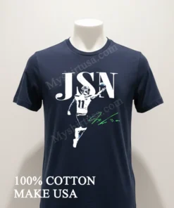 What truly sets this tee apart from the dime-a-dozen fan gear out there? It’s the attention to detail in the design. The signature graphic isn’t just slapped on; it’s integrated with a clean, modern aesthetic that feels fresh and current, unlike those cluttered designs you often see. It speaks volumes without screaming. For me, as an American consumer, I want something that looks good but also feels good. This isn’t that stiff, scratchy fabric you get from cheap big box stores. We’re talking 100% premium American Cotton it’s soft, breathable, and has just enough stretch to move with you, not against you. I remember getting a new shirt once, and it shrunk two sizes after the first wash. What a nightmare! With this tee, the quality holds. The style itself is versatile it’s got that classic American streetwear vibe, loose enough for comfort but tailored enough to not look baggy. I can throw it on with my favorite worn-in jeans and sneakers for a casual weekend vibe, or layer it under an open flannel shirt for a touch of rugged charm. Maybe even a denim jacket for a cool evening. When it comes to care, it’s simple: machine wash cold with similar colors, tumble dry low, and definitely no bleach. Turn it inside out before washing to protect the print, and avoid ironing directly on the design. Treat it right, and this shirt will be a MVP in your wardrobe for seasons to come, just like JSN himself.