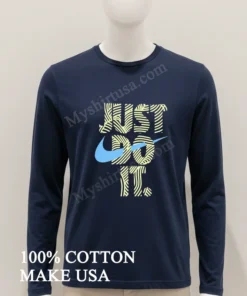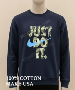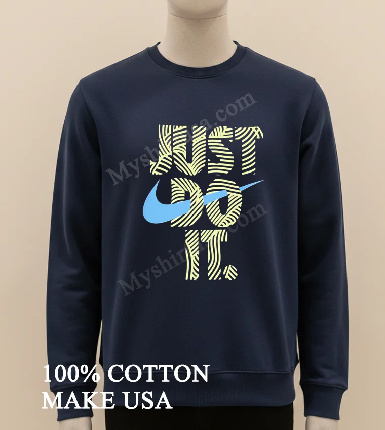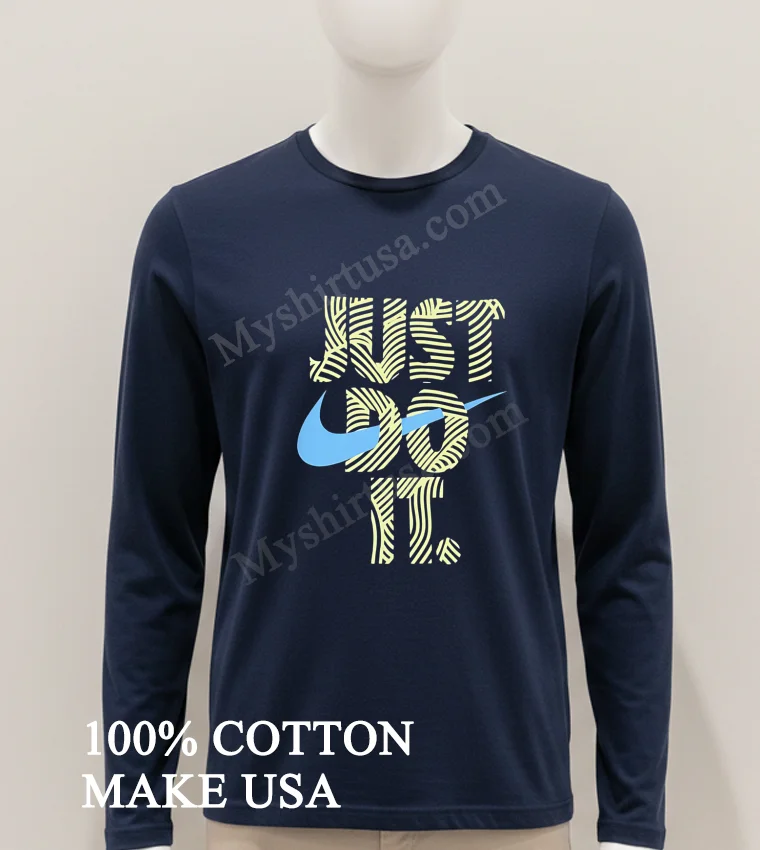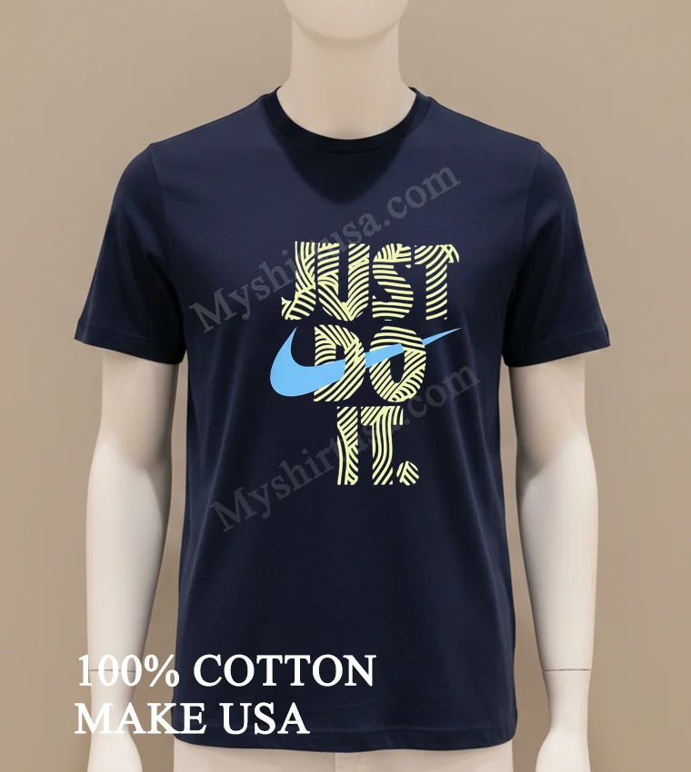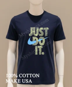 The ‘Just Do It’ spirit is absolutely everywhere in American culture today, inspiring us at every turn! From the incredible triumphs at the recent Olympic games to the surge in local community marathons and the empowering ‘hustle culture’ celebrated on social media it’s a powerful mindset that resonates deeply. At myshirtusa.com, you can effortlessly grab your own Just Do It Swirly Pattern Blue Swoosh Graphic Shirt to represent that unstoppable drive and connect with the moment. Keywords: Just Do It graphic tee, Blue Swoosh shirt, motivational apparel, active lifestyle fashion, iconic slogan wear, trendy athletic tee.