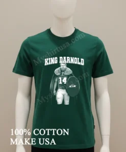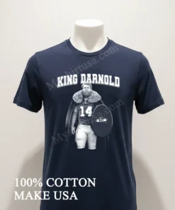 Okay, let’s talk design. This isn’t just another graphic tee. The ‘Viking Warrior Shield’ motif truly stands out, with its fierce, hand-drawn feel, blending Norse mythology with football grit. Unlike flimsy, peeling iron-ons, this print is high-quality, deeply integrated into the fabric, ensuring it stays sharp and vibrant for years. The detailed artworkfrom the battle-worn shield to Viking helmet elements, interwoven with Darnold’s number 14offers a unique narrative, a conversation starter a generic jersey can’t match.