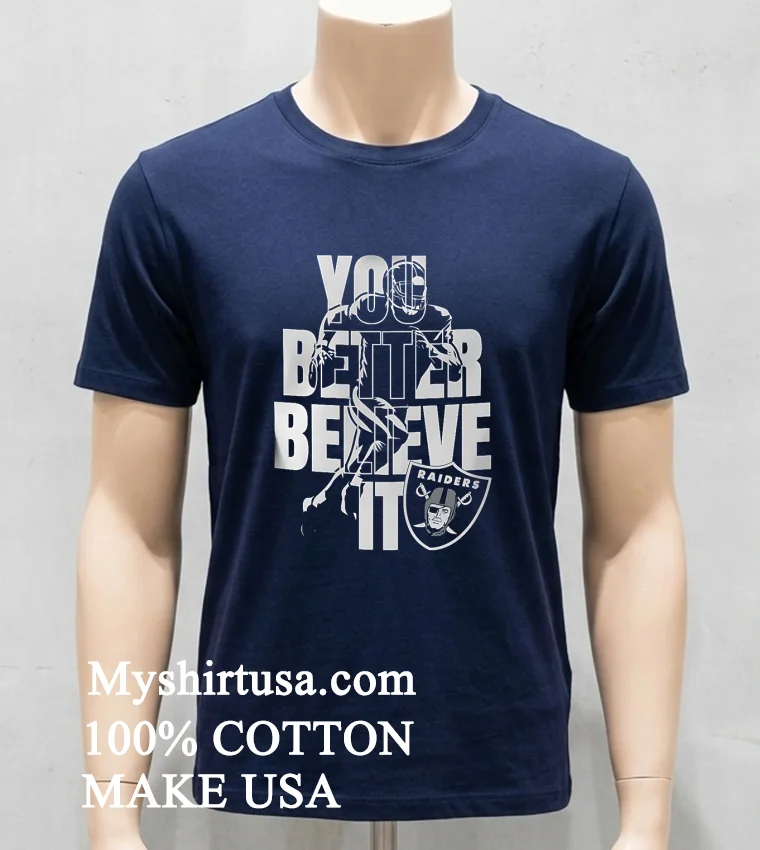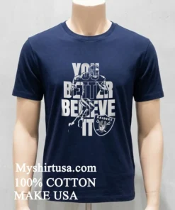 Are you ready to truly represent the Silver and Black? Why settle for less when you can have this amazing Las Vegas Raiders You Better Believe It Shirt? Crafted from 100% American Cotton, it’s soft, stretchy, and breathable perfect for any day. Priced at just $23 USD, and with delivery in just 3-5 days within the US, you can’t beat it. Embrace that Vintage, Streetwear, American style today.