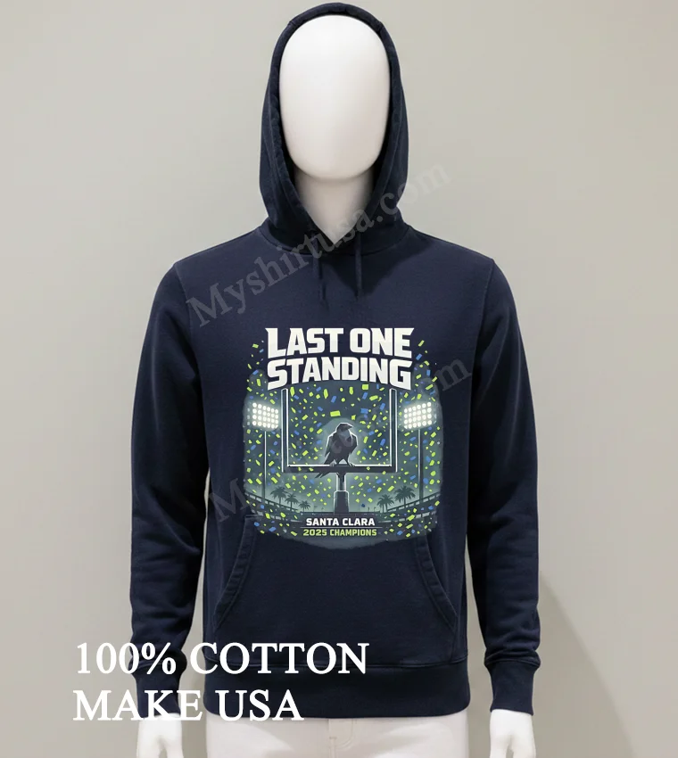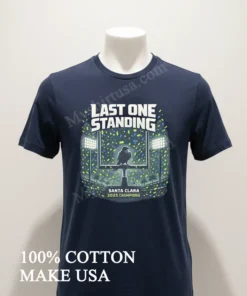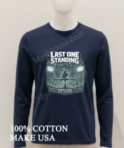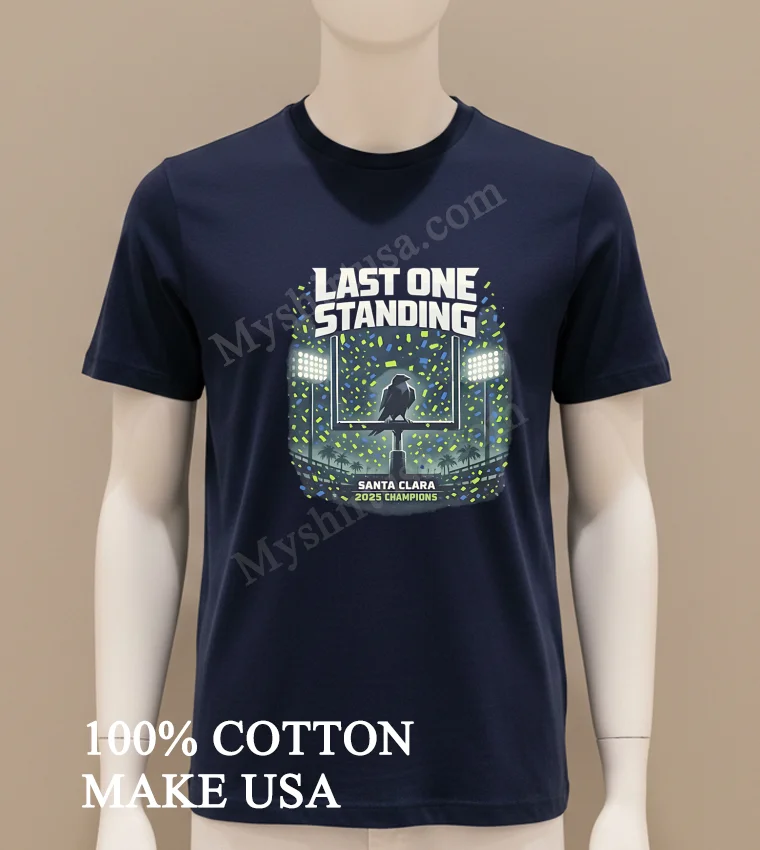 Honestly, when that Myshirtusa package landed on my porch in just three days free shipping, too my day instantly brightened. ‘Fastest delivery ever!’ I thought, always loving their quality tees. Sarah from Ohio raved, ‘Amazing print, quick delivery!’ Mike from Texas messaged, ‘Fits perfectly, worth it.’ My only small question was about returns, but I’ve never needed one. What truly excited me was finally getting my hands on the Last One Standing Santa Clara 2025 Champions Raven Shirt.