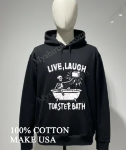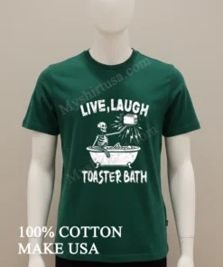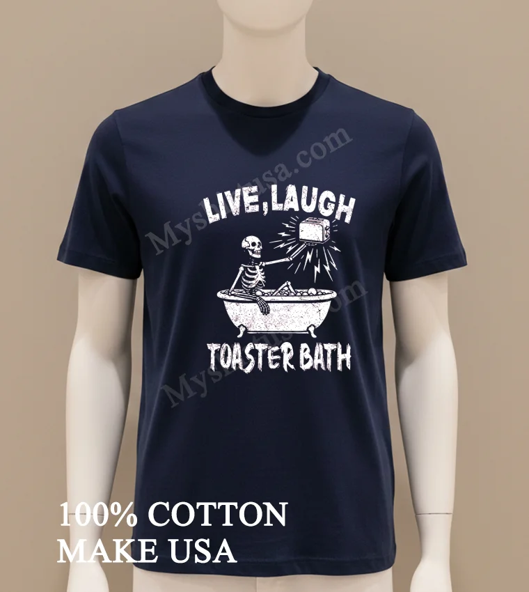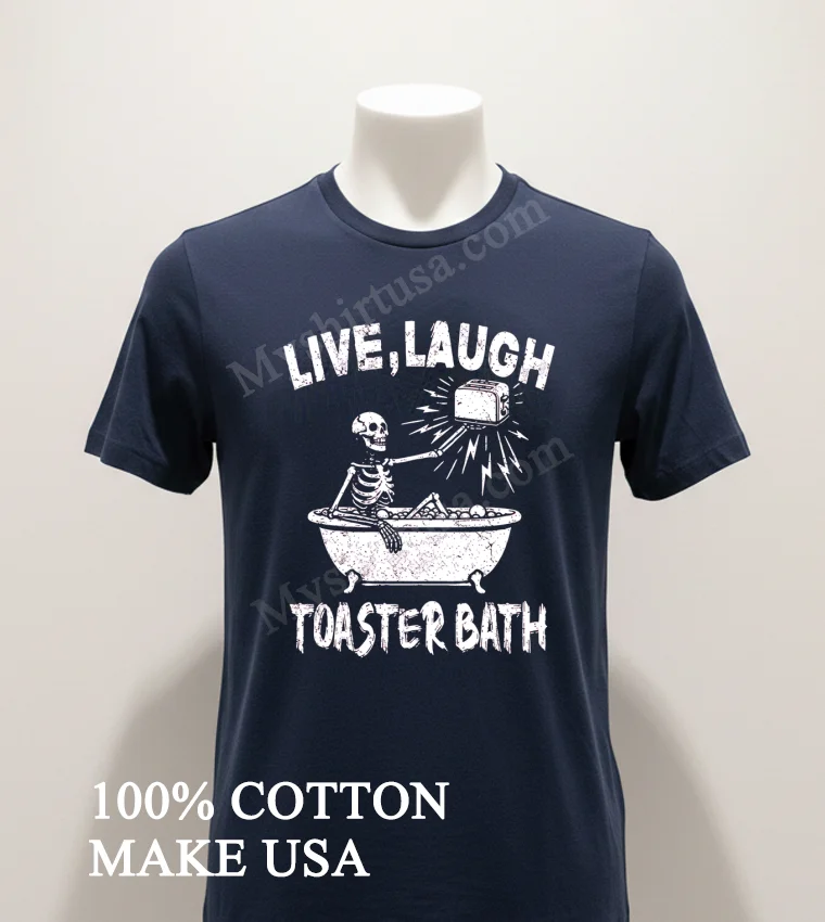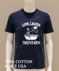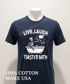 Hey there, fashion rebel! Ever wonder if there’s a tee out there that truly gets you? One that arrives so fast you barely blink, with free shipping that makes your wallet sing? “Got my tee in three days, totally blew my mind!” raves Jessica L. “The quality is amazing, and it got here way quicker than I expected,” adds Mark T. We hear you! At Myshirtusa, we’re all about making that experience effortless, leaving you wondering, “Is their shipping always this magical, and can I return it if I change my mind (not that I ever would with this one)?” Because once you slip on our Live Laugh Toaster Bath Skeleton In Bathtub Distressed Graphic Shirt, you’ll know it’s the tee you’ve been searching for.