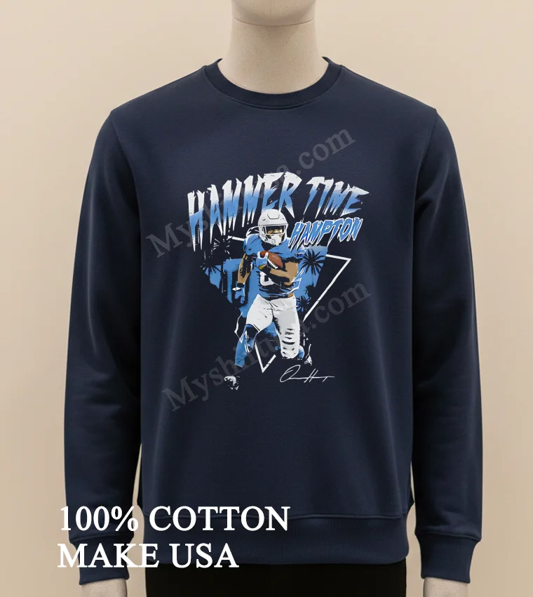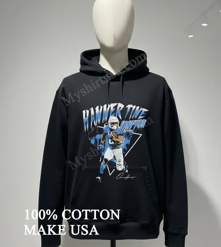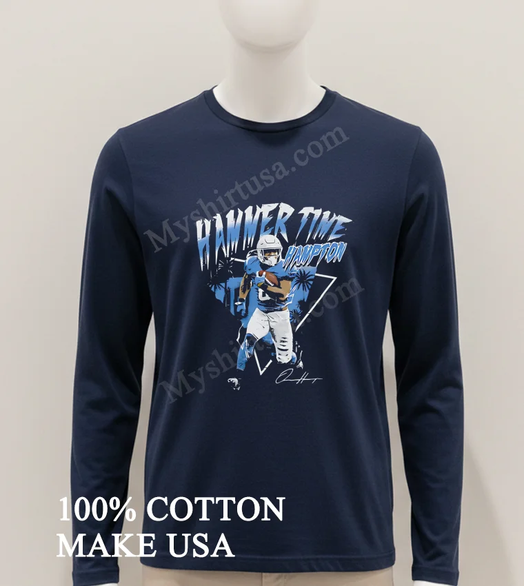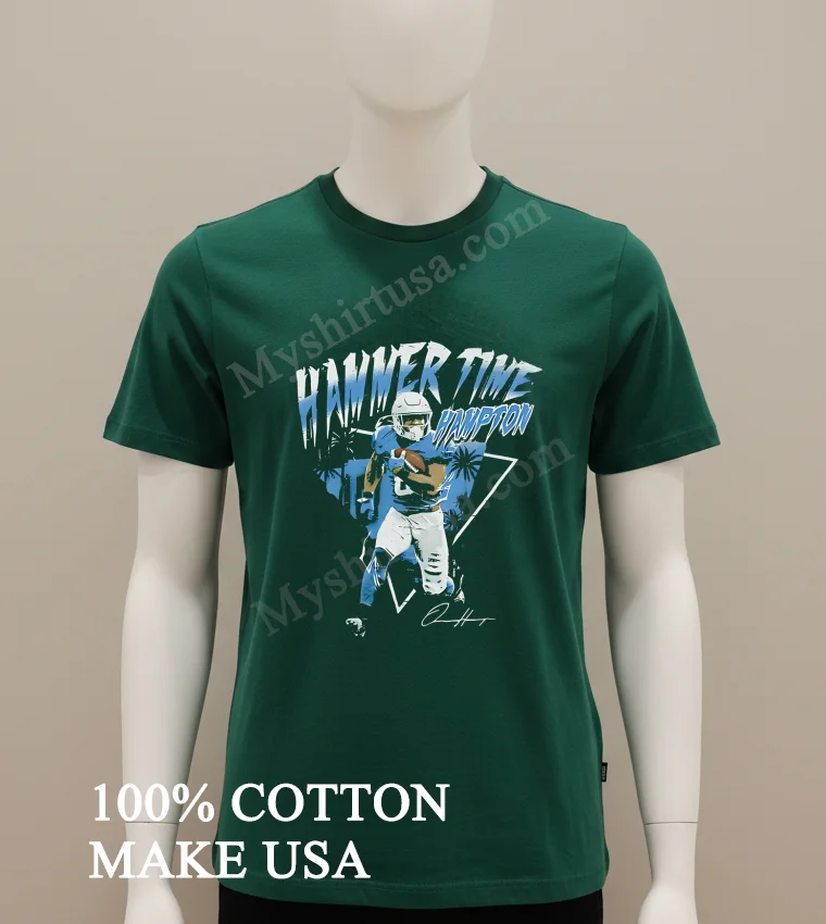 Ready to upgrade your game day look or just make a statement in everyday life? Don’t you deserve a tee that feels as good as it looks, a true standout in your wardrobe? Experience the difference with our 100% American Cotton incredibly soft, perfectly stretchy, and wonderfully breathable. At just $23 USD, with reliable 3-5 day US delivery, this Vintage, Streetwear, American style shirt is an absolute steal! Grab your Los Angeles Chargers Hammer Time Hampton Omarion Hampton Signature Shirt at Myshirtusa today and let your true fandom shine!