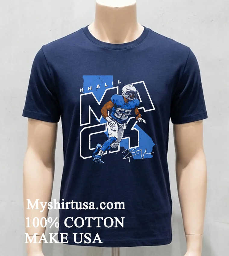 Let’s talk details because, let’s be real, not all graphic tees are created equal. You know the drill: you buy a cool shirt, one wash, and it’s either warped, faded, or feels like sandpaper. This isn’t that shirt. The design on this tee isn’t some flimsy iron-on; it’s vibrant, sharp, and durable, showcasing Khalil Mack’s player map signature in a way that truly pops without being over the top. It stands out from those generic mass-produced designs you see everywhere.