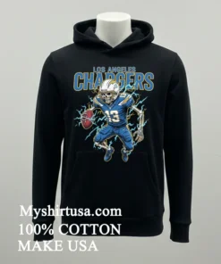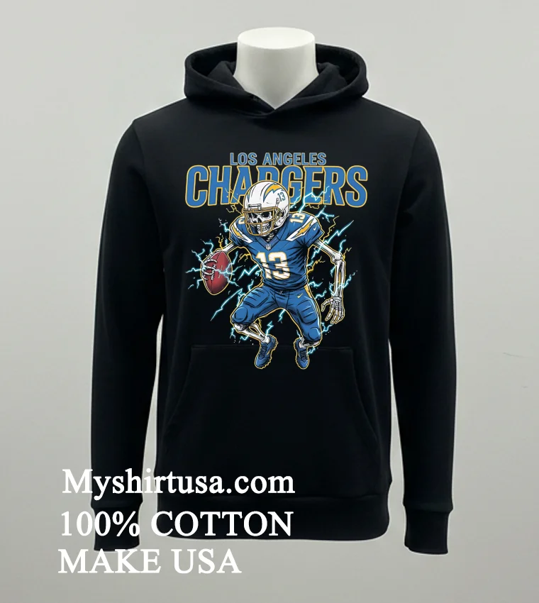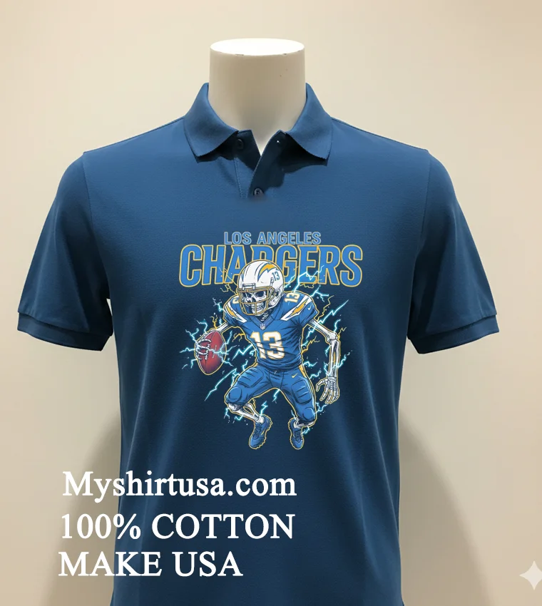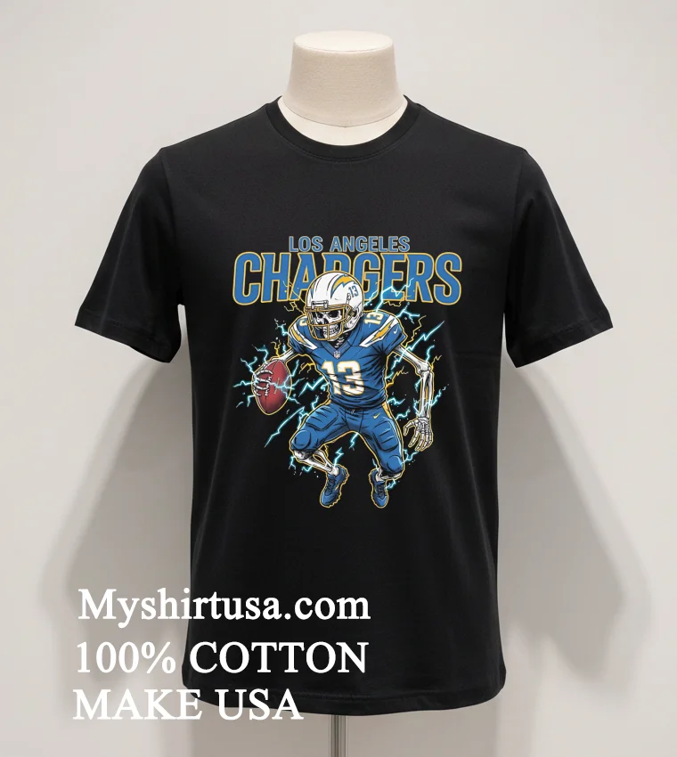 Let’s talk about what makes this shirt a true standout. First, the design: that dynamic skeleton football player, engulfed in a fiery passion, emblazoned with the Chargers’ iconic lightning bolt, is not just a logo; it’s a conversation starter. It’s got that gritty, rebellious aesthetic that perfectly captures the spirit of the game and contrasts sharply with the generic team logos you see everywhere. It’s distinct, a piece of wearable art that tells a story, setting it miles apart from standard fan apparel. Then, there’s the material. We’re talking 100% premium American Cotton. You feel the difference the moment it touches your skinsoft, breathable, with just the right amount of stretch. It’s not that flimsy, scratchy stuff that loses its shape after one wash. This tee is built to last, designed for both comfort and durability. Styling it is a breeze, too. Throw it on with your favorite distressed jeans and sneakers for a casual game day look, layer it under an open flannel shirt for a touch of vintage flair, or even pair it with some cargo shorts for a relaxed weekend vibe. As for keeping it looking pristine? It’s easy. Just turn it inside out, wash with cold water, and tumble dry on low. Avoid bleach at all costs we want that fiery design to stay vibrant! Treat it right, and this shirt will be your go-to for many seasons to come.