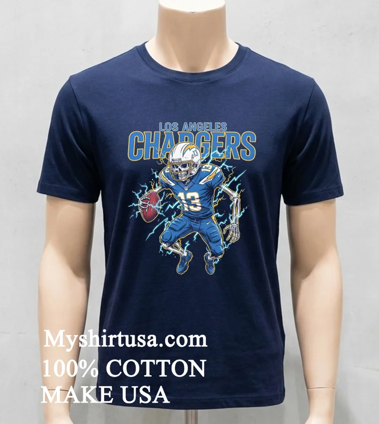 It was just last Sunday, scrolling through my feed after the Chargers game what a nail-biter, right? and I saw a trending post from a popular sports influencer, “Game day fashion isn’t just about jerseys anymore; it’s about making a statement!” And immediately, this T-shirt popped into my mind. The Los Angeles Chargers Men’s Football Skeleton Player Burning Shirt isn’t just another piece of fan merch; it’s a declaration. Whether you’re tailgating with friends, hitting up a watch party at your local sports bar, or just chilling at home, this tee screams “I’m a Chargers fan, and I’ve got style.” It taps right into that current vibe of vintage-inspired graphic tees and streetwear that’s dominating American fashion, blending classic team spirit with an edgy, almost art-gallery-worthy design. Forget plain polos; this is the era of bold graphics and authentic self-expression, and this shirt is at the forefront.