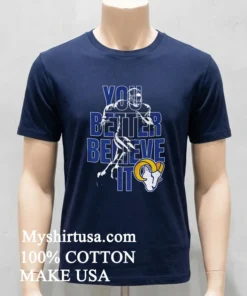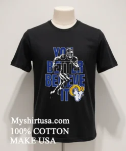 It’s always a good feeling when you hit “order” and then BAM! Your package is on your doorstep in just 3-5 days, free shipping too. That’s the kind of speed we’re talking about, and it’s why folks rave about their experience. “Absolutely thrilled with how fast my order arrived!” one customer cheered. “And the quality? Way better than I expected!” others echoed. Getting that quick delivery, knowing a good return policy is there if you need it (though you probably won’t!), just makes you feel good. And that’s exactly the vibe we get from our Los Angeles Rams Nfl You Better Believe It Shirt just another daily dose of happiness from your favorite Myshirtusa tee.