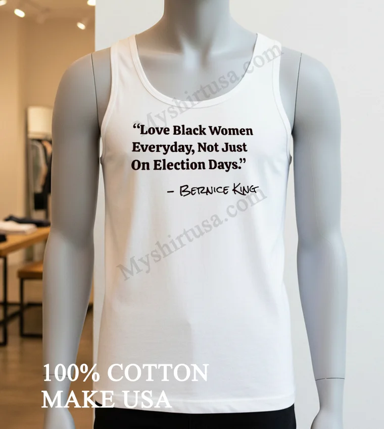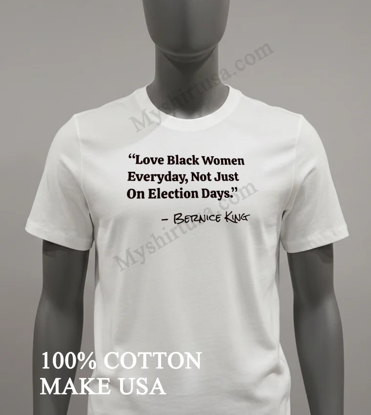 Ready to wear your values with pride and comfort? Why simply follow trends when you can make a powerful, positive statement? Grab your own Love Black Women Everyday Not Just On Election Days Bernice King Shirt now! Expertly crafted from 100% premium American Cotton for ultimate softness, breathability, and stretch. It’s priced at an accessible $23 USD, and delivered straight to your doorstep in just 3-5 days anywhere in the US. Embrace this vintage, streetwear, truly American style and join a powerful community. What are you waiting for? #BlackWomenEveryday #StreetwearUSA #ActivistFashion #BerniceKingTee #EmpowerBlackWomen. Find it exclusively at Myshirtusa.