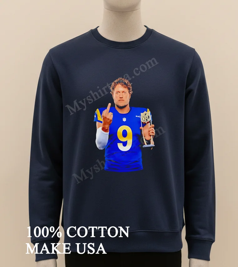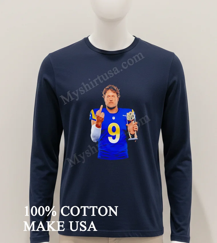 Remember the electric atmosphere of Super Bowl LVI? The sheer triumph, that iconic, unforgettable moment of Matthew Stafford’s celebration it’s more than a memory, it’s a legend! Now, you can easily carry a piece of that history. At myshirtusa.com, grabbing your very own Matthew Stafford Los Angeles Rams 9 Middle Finger NFL Trophy Shirt is incredibly quick and simple. It’s the ultimate way to relive the Matthew Stafford Rams Super Bowl win, proudly sport your Los Angeles Rams Championship tee, or simply rock that iconic Stafford victory shirt. Don’t miss out on this piece of NFL history!
