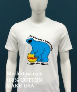 Ready to add some genuine humor and comfort to your wardrobe? Why settle for boring when you can wear a story? Grab your Me Give You A Cookie But Cookies Me Ate Them Shirt today! Made with 100% American Cotton, it’s soft, stretchy, breathable, and yours for just $23 USD. We promise quick delivery in 35 days right to your door in the US, in a style that’s pure Vintage, Streetwear, and American cool.