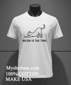 Ready to upgrade your comfort and style? Why settle for less when you can have the best? Our Meow Is The Time Shirt is crafted from 100% premium American Cotton soft, stretchy, and incredibly breathable. Get this high-quality, beautiful tee for just $23.00, delivered right to your door in 3-5 days across the US. Embrace that perfect Vintage, Streetwear, American style today with Myshirtusa!