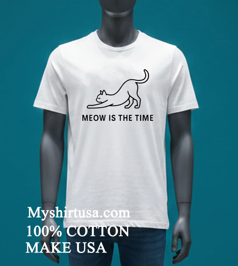 #MeowIsTheTimeShirt #AmericanFashion #StreetwearUSA #GraphicTee #ComfortCore