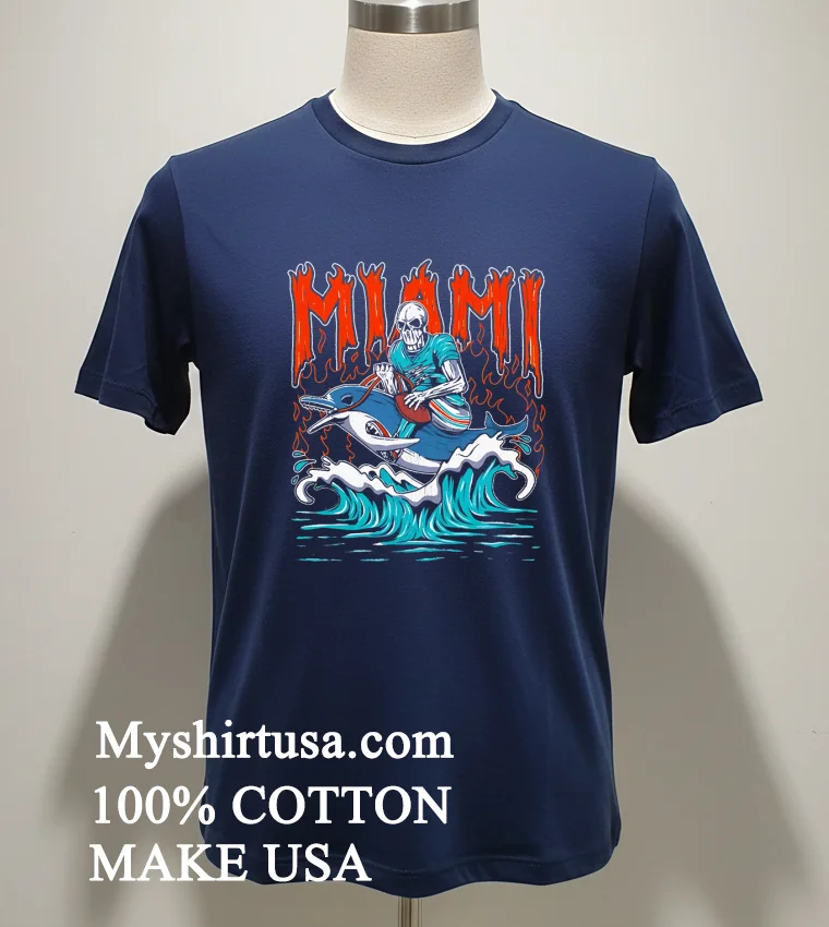 Ready to elevate your fan game with a tee that truly stands out? Grab the Miami Dolphins Skeleton Football Player Riding A Dolphin Shirt from Myshirtusa today! Crafted from 100% American Cotton, it’s soft, stretchy, breathable, and priced at just $23 USD. Enjoy lightning-fast delivery in 35 days across the US. Own that Vintage, Streetwear, American style!