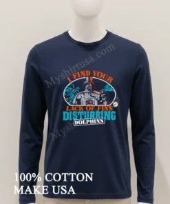Alright, let’s talk details. This isn’t just any tee. The design is a high-definition print, where iconic Dolphins colors merge perfectly with legendary Star Wars imagery maybe a Rebel Alliance symbol fused with the ‘Fins logo! It’s unique, not generic, truly standing out in a crowd. Crafted from 100% American Cotton, it’s unbelievably soft, breathable, and comfortable from day one. I’d rock it with distressed jeans and classic sneakers for that easygoing American style, perfect for a casual Saturday or game day. For lasting vibrancy, always wash inside out with cold water and tumble dry low; definitely no harsh chemicals! You’ll find fans geeking out about these epic crossovers on Reddit’s r/Dolphins or dedicated Star Wars fan groups. This shirt is a conversation starter!