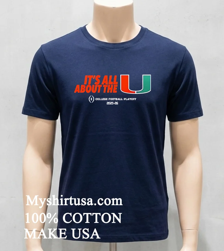 Ready for ultimate U pride? Why wait? Grab your Miami Hurricanes It S All About The U College Football Playoff 202526 Shirt now! It’s 100% American Cotton: soft, stretchy, breathable. Only $23 USD. Expect 3-5 day US delivery. Embrace Vintage, Streetwear, American style. Quality, comfort, and unwavering team spirit, guaranteed. Your perfect gameday look, delivered quickly by Myshirtusa!