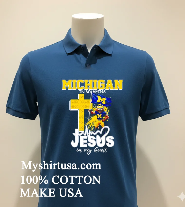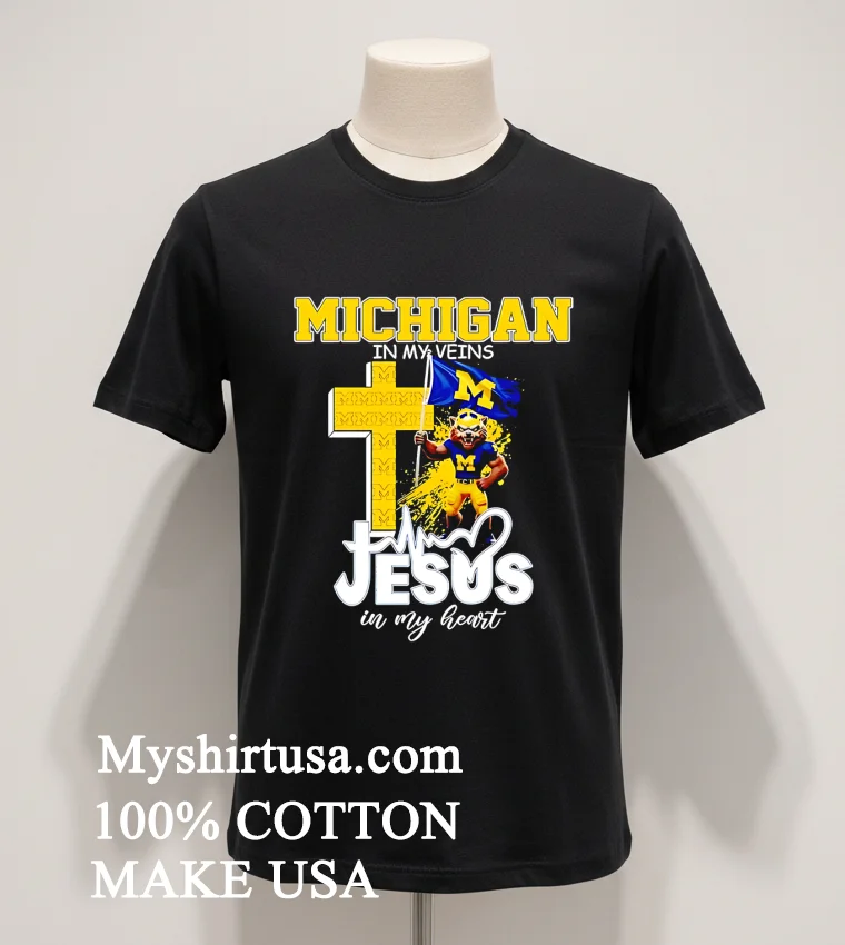 Now, let’s talk about the shirt itself, because this isn’t just any tee you grab off the rack. From an American consumer’s perspective, we demand comfort, durability, and a message that resonates. First, the design: ‘Michigan Wolverines Football In My Veins Jesus In My Heart Shirt’ isn’t just text; it’s a statement. The typography is chosen to feel both classic and powerful, bold enough to be seen from afar at the Big House, yet subtle enough for casual wear. Unlike some generic fan gear that feels mass-produced, this design has a soul, beautifully intertwining two core pillars of many American lives unwavering team spirit and deep personal faith.