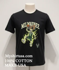 Let’s talk about what makes this shirt truly stand out, from an American perspective. First off, the design isn’t just slapped on; it’s a conversation starter. You’ve got that fierce Bucks logo, but then there’s this incredible skeleton player, all fiery and dynamic, mid-dunk. It’s bold, it’s edgy, and it screams Milwaukee pride without being just another plain logo tee. Unlike some generic sports shirts, this design truly captures the intensity of the game with an artistic twist, making it suitable for more than just game day. It’s unique, instantly elevating your casual wear. Now, for the feel: this isn’t that stiff, scratchy fabric you dread. It’s made from a premium, soft, breathable cotton that feels incredible against your skin perfect for those humid summer nights or layering up when the weather cools. I love how versatile it is. I can throw it on with my favorite distressed jeans and some chunky sneakers for that authentic streetwear vibe, or even dress it up a bit with a fitted jacket and chinos for a more smart-casual look. It’s not just a tee; it’s a foundation for a whole outfit. And caring for it? Simple. To keep that vibrant print and soft feel, just turn it inside out, wash it in cold water with similar colors, and tumble dry on low. Avoid harsh bleaches, and never iron directly on the design. Trust me, treat it right, and this shirt will be a favorite for seasons to come.