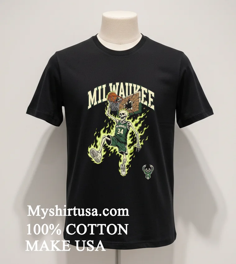 Ready to elevate your fan game and style? What are you waiting for? Grab your own Milwaukee Bucks Men’s Basketball Skeleton Player Fire Shirt and experience the difference of 100% American Cotton soft, stretchy, and incredibly breathable. For just $23 USD, you get premium quality, vintage street style, and rapid delivery right to your door in 3-5 days across the US. Don’t settle for less!