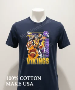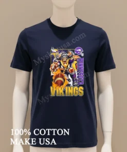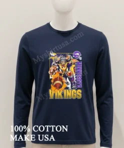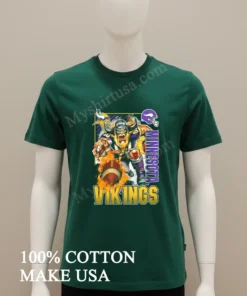 Let’s really talk about this tee! The design elements on this shirt are just sick that aggressive player, the fierce monster mascot with its glowing eyes, the dynamic claw marks and fire ball effect… it just screams Viking pride in a way no basic logo shirt can. This isn’t just fan gear; it’s a statement piece, perfectly aligned with today’s trend of graphic tees that blend sports culture with authentic streetwear. Made from super soft, ringspun cotton that 100% American feel it’s breathable and comfortable, with that perfect relaxed, classic American fit that looks good on everyone. I throw mine on with distressed denim and my favorite chunky sneakers for a laid-back weekend vibe, or layer it under an open flannel or an unzipped hoodie when there’s a chill in the air. Washing? Easy peasy: cold water, inside out, tumble dry low, and it stays vibrant and holds its shape. Seriously, I’ve seen fans buzzing about this exact design on Reddit’s NFL subreddits, Twitter, and all over Instagram stories. It’s more than a shirt; it’s a talking point, connecting you to a community that lives and breathes Vikings football.