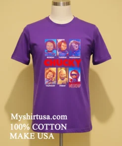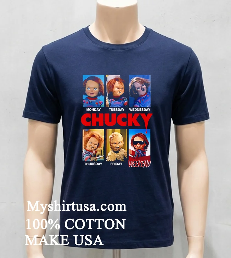 So, ready to upgrade your wardrobe with a tee that gets you? Why settle for boring when you can wear a story? Grab your own high-quality, beautiful Monday Tuesday Thursday Friday Weekend Chucky Doll Movie Wall Art Shirt today! Made from 100% American Cotton, it’s soft, stretchy, and breathable for only $23 USD. Enjoy fast 3-5 day delivery in the US. Embrace that Vintage, Streetwear, American style! Don’t wait. Find it exclusively at Myshirtusa.
