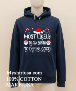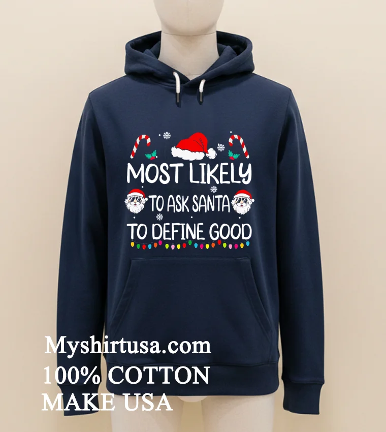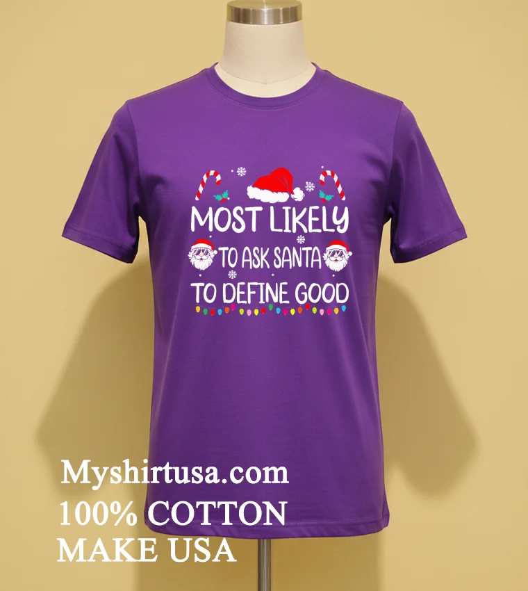 Let’s talk about what makes this shirt truly special. Unlike those mass-produced, flimsy holiday sweaters that itch and fade after one wash, our “Most Likely To Ask Santa To Define Good Christmas Shirt” is crafted for comfort and longevity. The design itself is a masterpiece of understated wit clean, bold typography that gets the message across without being over-the-top. It’s a subtle nod to intelligence and humor, standing out from the sea of generic reindeer and Santa faces. We’re talking 100% premium American cotton here, folks. It’s soft against the skin, breathable, and has just the right amount of stretch for that perfect relaxed fit, embodying that effortless American streetwear vibe. You can easily style it casually with your favorite jeans and sneakers for a trip to the local coffee shop or layer it under a chic blazer for a touch of unexpected charm at a family gathering. To keep your philosophical statement looking pristine, simply machine wash it inside out with cold water, tumble dry on low, and never iron directly on the print. Trust me, treating it right ensures this shirt remains a go-to for many holiday seasons to come.