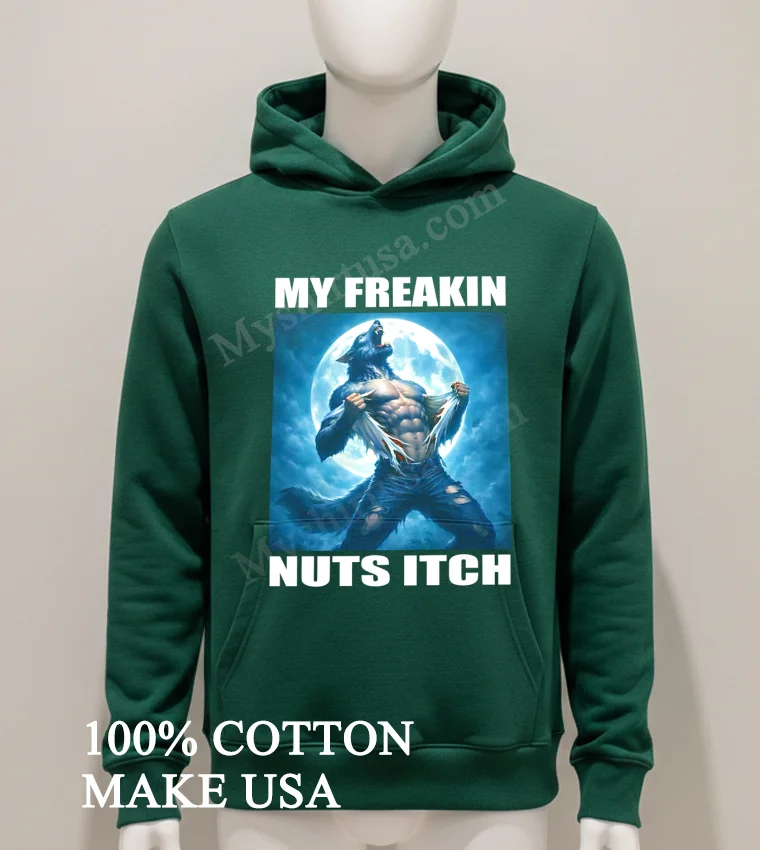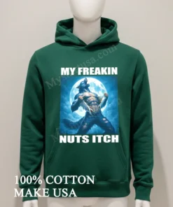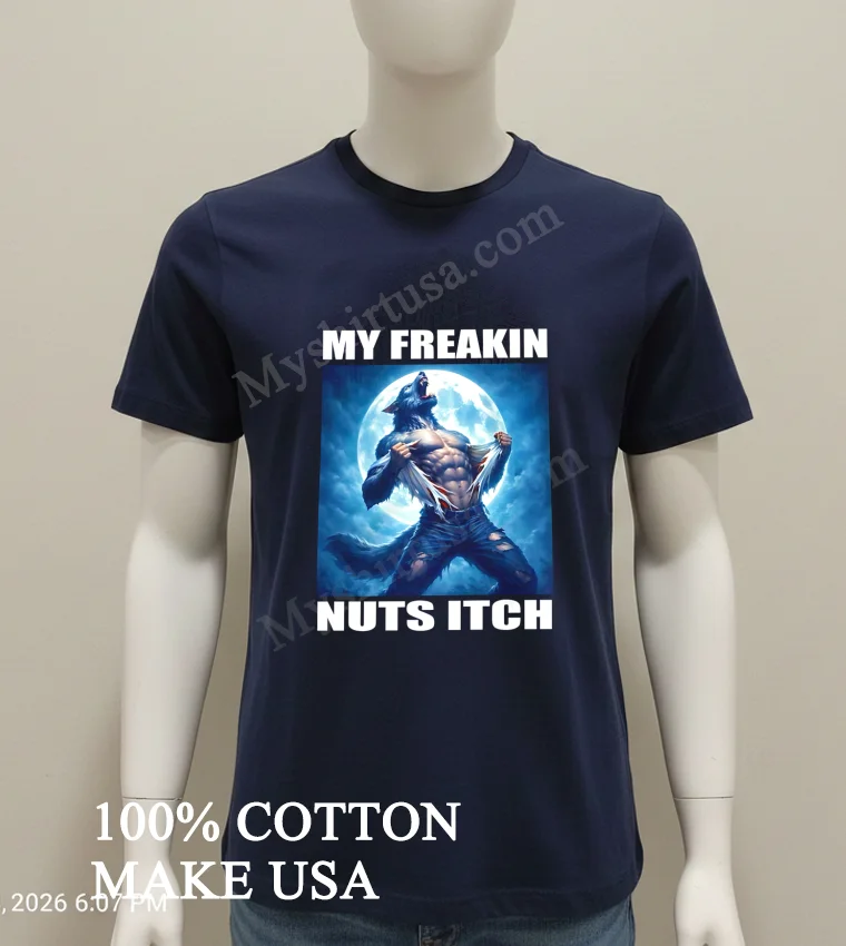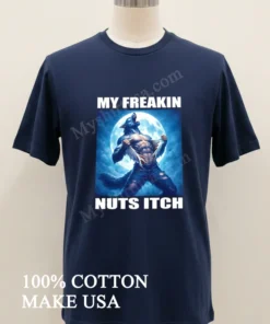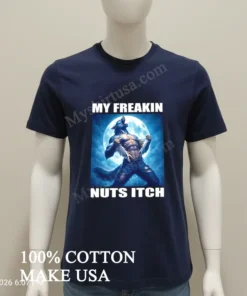 This isn’t just some run-of-the-mill graphic tee; it’s a masterpiece of understated rebellion and humor. The design, featuring a muscle-bound werewolf hilariously ripping his shirt with the unforgettable phrase “My Freakin Nuts Itch,” perfectly captures that relatable, slightly unhinged feeling we all have sometimes. Unlike those generic band shirts or basic logo tees flooding the market, this shirt screams personality and a fantastic sense of humor. It’s a statement piece, designed to catch eyes and spark smiles, proving that fashion can be both fun and deeply expressive.