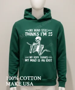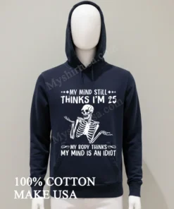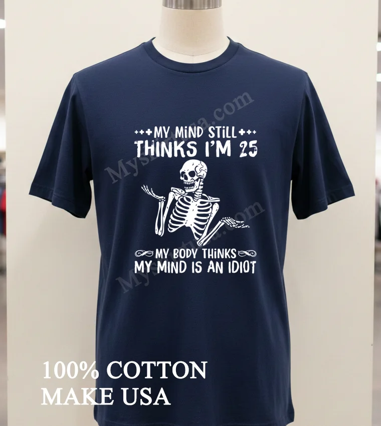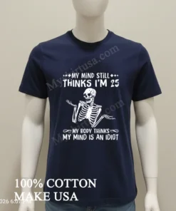 Life just got a whole lot funnier, thanks to this shirt! I gotta say, when I stumbled upon the My Mind Still Thinks I M 25 Body Thinks Mind Idiot Shrugging Skeleton Shirt, I knew it was for me. And let me tell you, the positive reviews and testimonials I saw online were no joke people truly love it! Mine arrived in just three days, free shipping too, which is always a bonus. Seriously, how often does that happen? I usually worry about delivery times and return policies, but Myshirtusa made it so smooth. This isn’t just another tee; it’s already one of those feel-good pieces I reach for constantly.