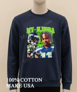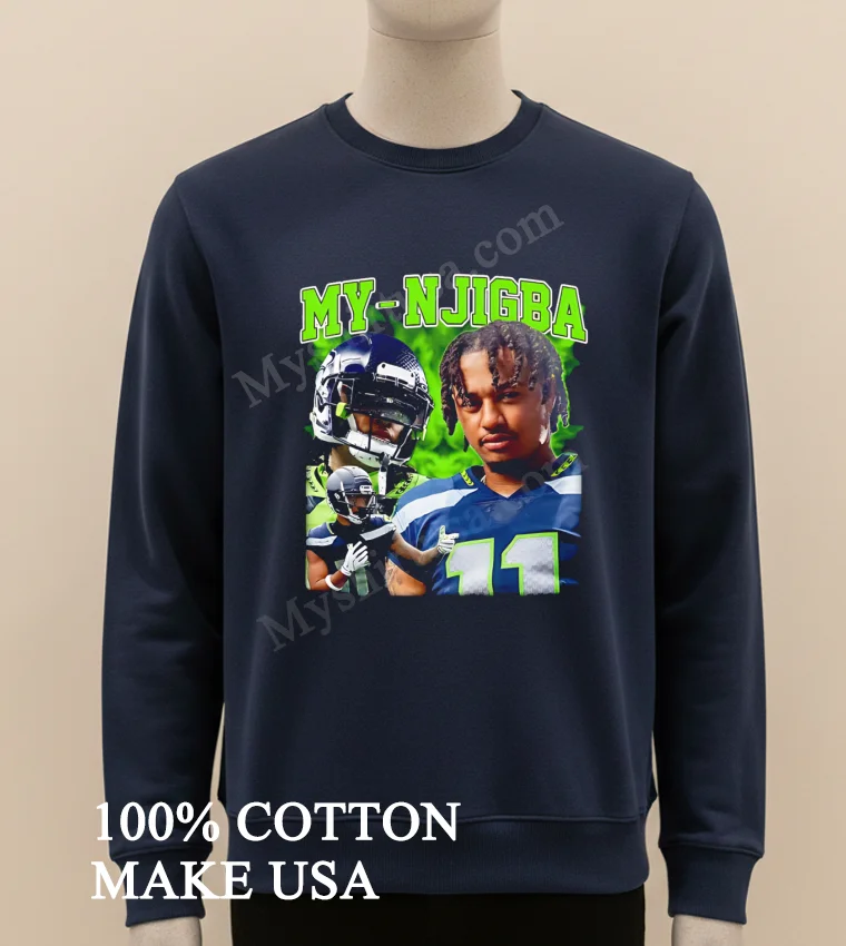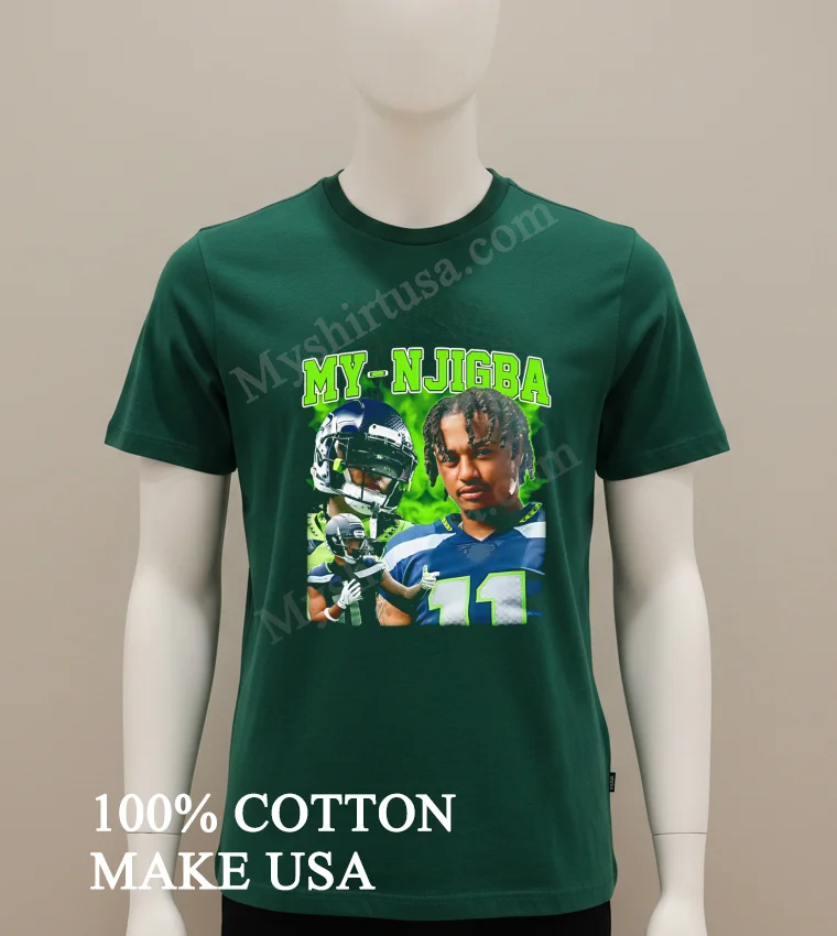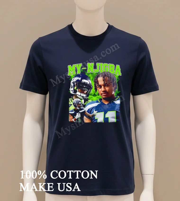 Why just watch the game when you can wear your pride? Grab your My Njigba Jaxon Smith Njigba Seattle Seahawks Number Eleven Football Shirt today! Made from 100% American Cotton, soft, stretchy, and breathable, it’s comfort and style combined for just $23 USD. Expect lightning-fast delivery in 3-5 days across the US. Is your wardrobe ready for this level of Vintage, Streetwear, American style? Get yours now at Myshirtusa!