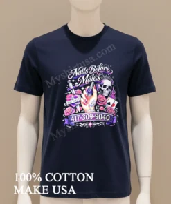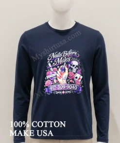 The message of the Nails Before Males Love Yourself Skull And Roses Shirt resonates deeply with today’s US fashion trends. From empowering TikTok movements to indie pop-up markets celebrating self-love, this vibe is huge! Getting your own self-love fashion, empowerment tee, or this unique graphic tee is quick and easy at Myshirtusa.com. Don’t miss out!