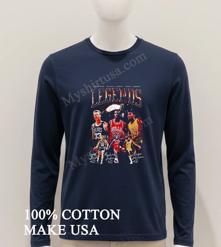 Relive the legendary era of Magic, Bird, and Jordan! From iconic rivalries to championship dynasties, these legends shaped basketball history and still influence today’s sports culture. Now, at Myshirtusa.com, you can easily own the Nba Legends Bird Jordan Johnson Graphic Signatue Shirt. It’s the essential NBA legends shirt, a vintage Bird Jordan Johnson tee perfect basketball fan apparel for any true enthusiast. Grab your classic vintage NBA shirt today!