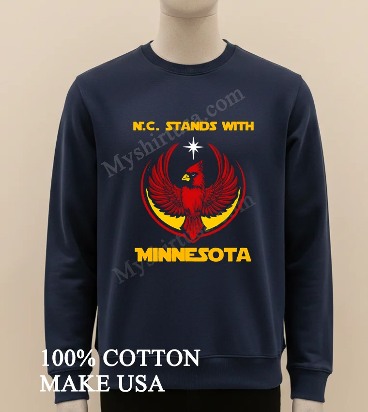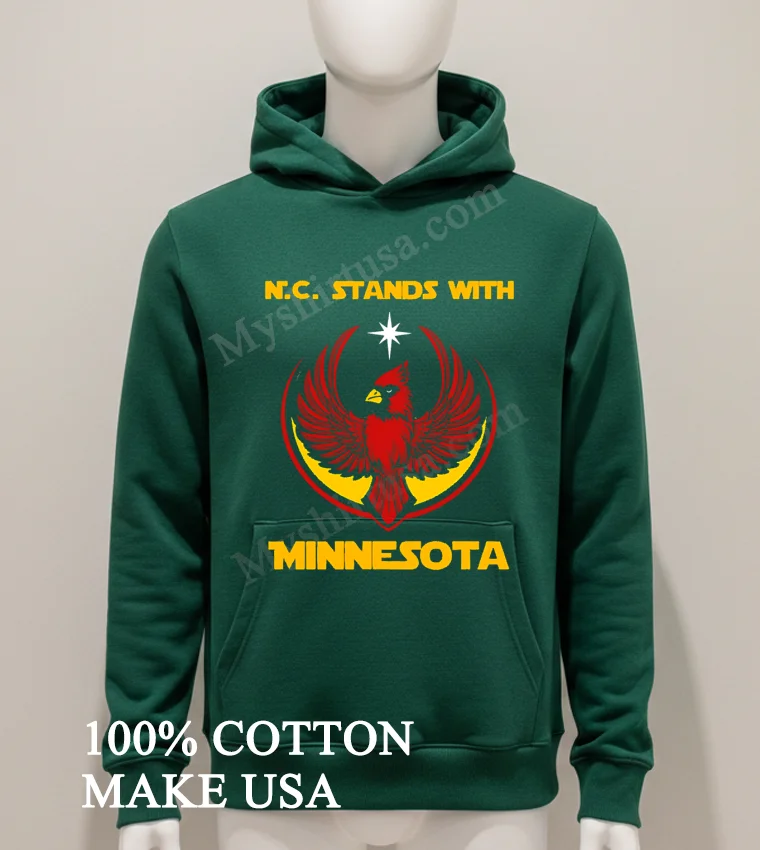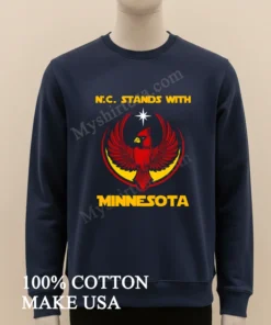 In today’s US fashion, solidarity and state pride are huge, especially with so many current events driving communities together. This tee perfectly captures that spirit. The N.c. Stands With Minnesota Cardinal Bird North Carolina Shirt is ideal for showing support or just daily style. At myshirtusa.com, you can easily buy this tee. Look for North Carolina pride shirts, Minnesota Cardinal apparel, state solidarity tees, and patriotic bird designs. Get yours quickly and wear your story!