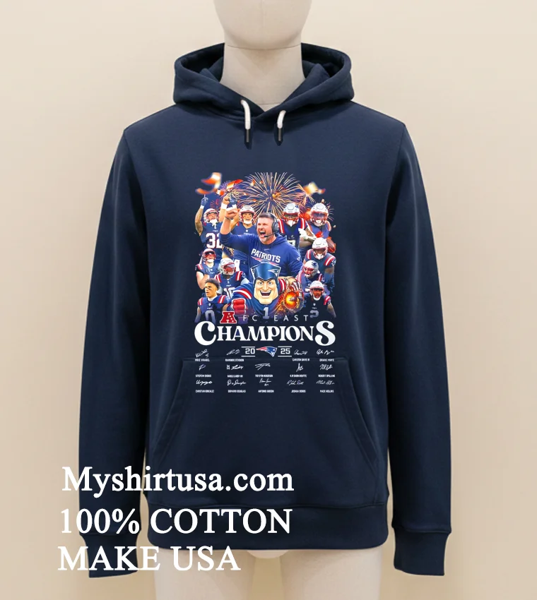 Ready to declare your loyalty and future victory? Why wait for 2025 when you can celebrate now? Secure your New England Patriots Afc East Champions 2025 Graphic Team Shirt today! Made with 100% American Cotton soft, stretchy, breathable. Just $23 USD, delivered to your US door in 3-5 days. Perfect for your Vintage, Streetwear, or classic American style. Don’t miss out! Only at Myshirtusa.